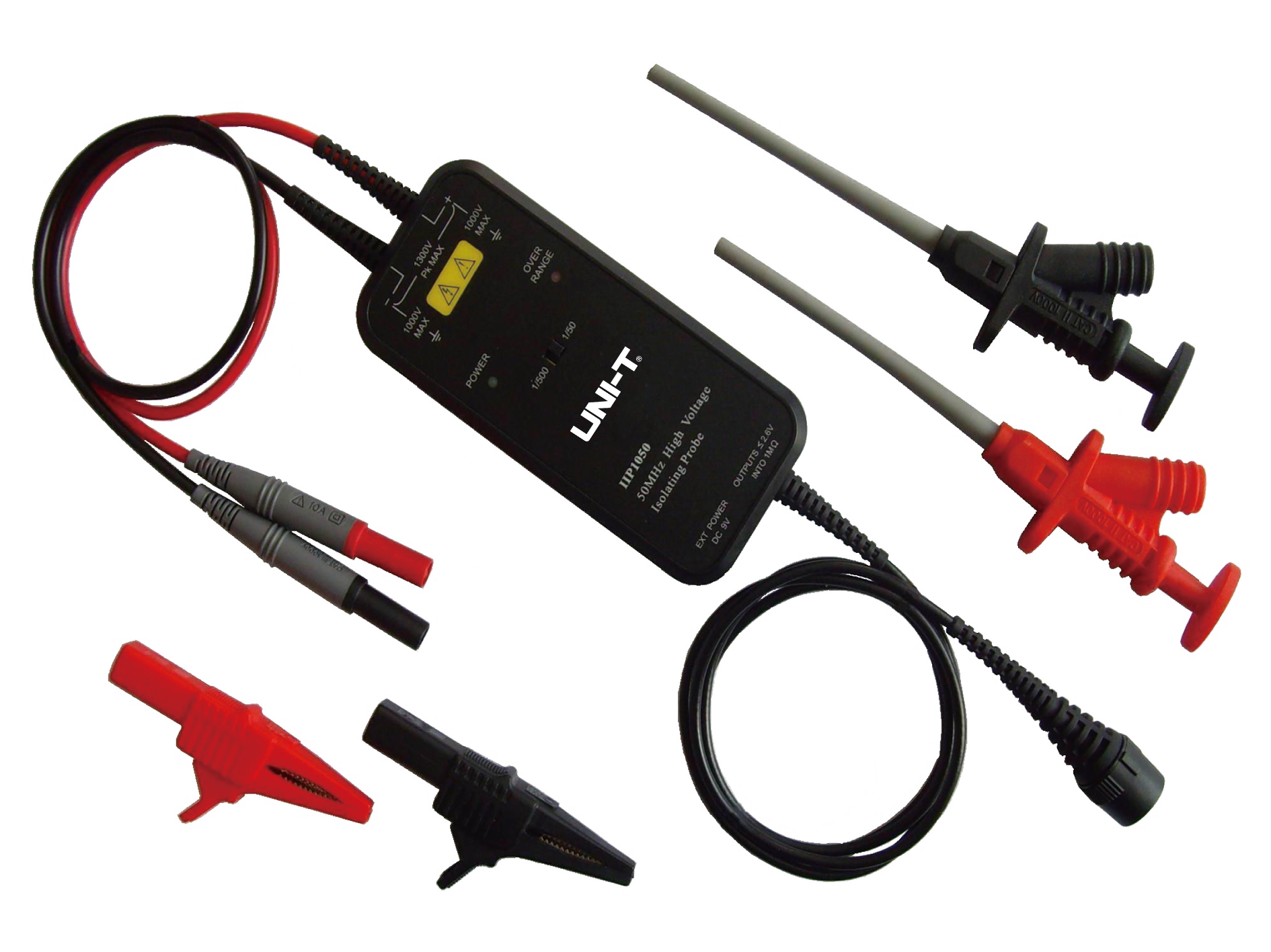 UT-P35 Дифференциальный пробник высокого напряжения: 1:50, 130 В (постоянный ток + пиковое значение переменного тока); 1:500, 1300 В (постоянный ток + пиковое значение переменного тока), полоса пропускания: 50 МГц, точность: 2 %