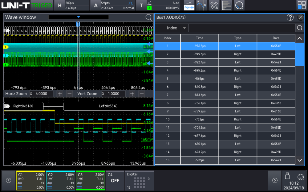 MSO3000X-Audio Возможность запуска последовательной шины аудио и ее анализа (I2S, LJ, RJ, TDM)