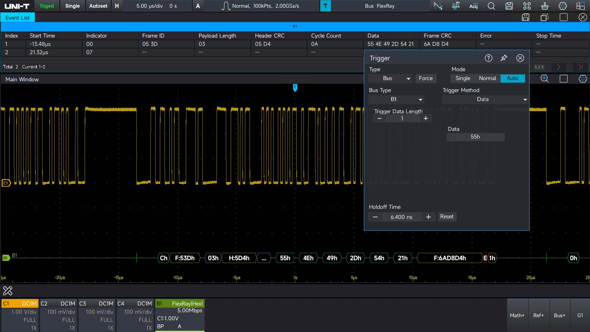 UPO7000L-FLEX Функция запуска и анализа данных по автомобильной последовательной шине для серии UPO7000L (FlexRay)
