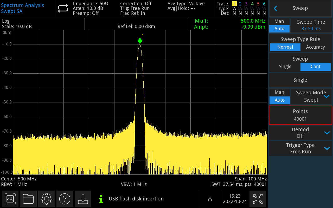 Просканируйте 40 001 точку Серия UTS3000B обеспечивает до 40 001 точки развертки, что повышает частотное разрешение и упрощает захват сигналов, которые трудно обнаружить.