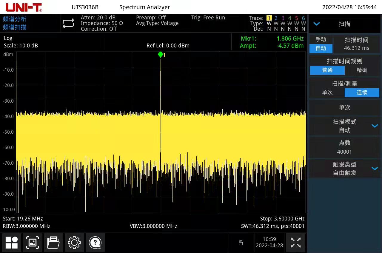 Превосходная чувствительность На тест слабого сигнала легко может повлиять уровень шума самого анализатора спектра. Серия UTS3000T+ имеет DANL до -161 дБм и обладает превосходной чувствительностью, позволяющей эффективно тестировать слабые сигналы.