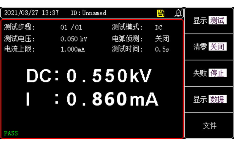 Испытание на выдерживание напряжения постоянного тока Максимальный диапазон поддержки: напряжение: 50 В-6000 В; ток: 0,1 мкА–5,00 мА;
