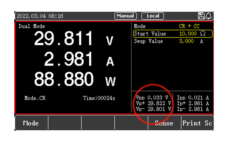 Функция отображения формы сигнала в реальном времени и функция измерения пульсаций Благодаря функции измерения пульсаций и отображения формы сигнала в реальном времени вы можете отслеживать изменения формы сигнала напряжения и тока
