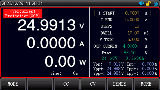 Проверка защиты Испытание на защиту, OCP, OVP: измерение функции защиты и времени отклика тестируемого продукта