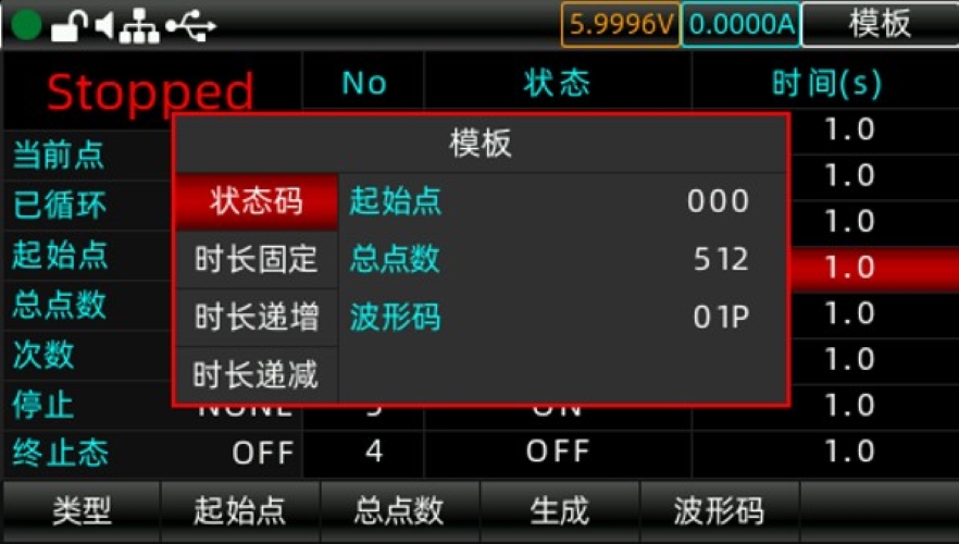 Режим списка Может быть установлено до 512 групп, временное разрешение достигает 100 мс, и могут быть встроены различные шаблоны формы сигнала