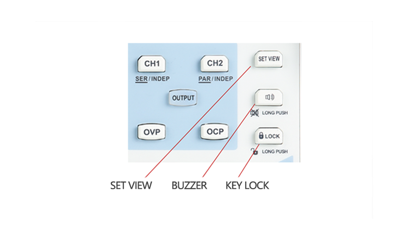 Функция звукового сигнала и блокировки клавиш, функция сохранения настроек при выключении, функция SET VIEW Переключатель звукового сигнала: включает звуковой сигнал в зависимости от рабочей среды. Функция блокировки клавиш: предотвращает случайное нажатие и неправильную настройку в процессе обычной работы. Функция сохранения настроек: восстанавливает последнее сохранённое значение при следующем включении устройства. Функция SETVIEW: вызов предустановленного значения с помощью одной клавиши