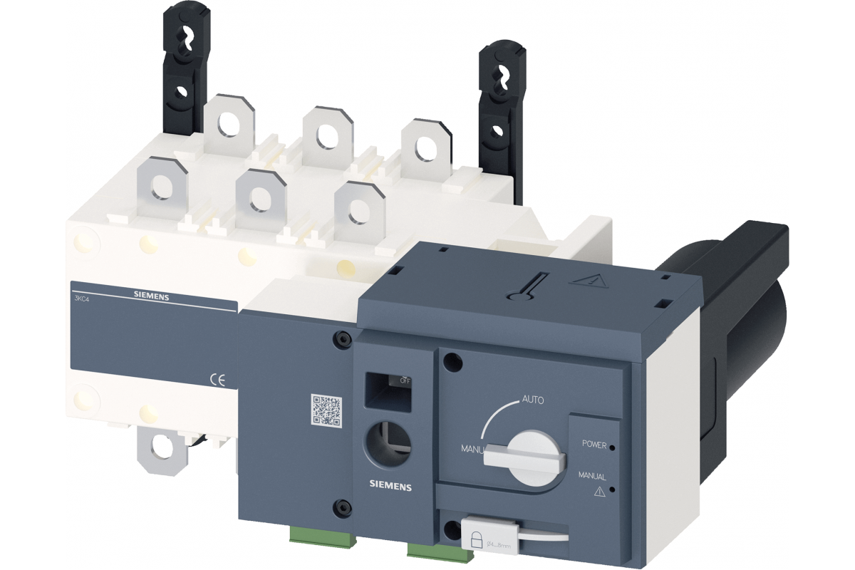 SENTRON, коммутационное оборудование 3KC, с дистанционным управлением, RTSE, 3-полюсное, Iu: 250 A, Ue AC: 415 В, Ie при AC-33 B при 415 В: 200 A, Ie при AC-23 A при 690 В: 125 A, винтовое крепление, моторизованный механизм управления, на правом конце, длинная ручка, шинное соединение