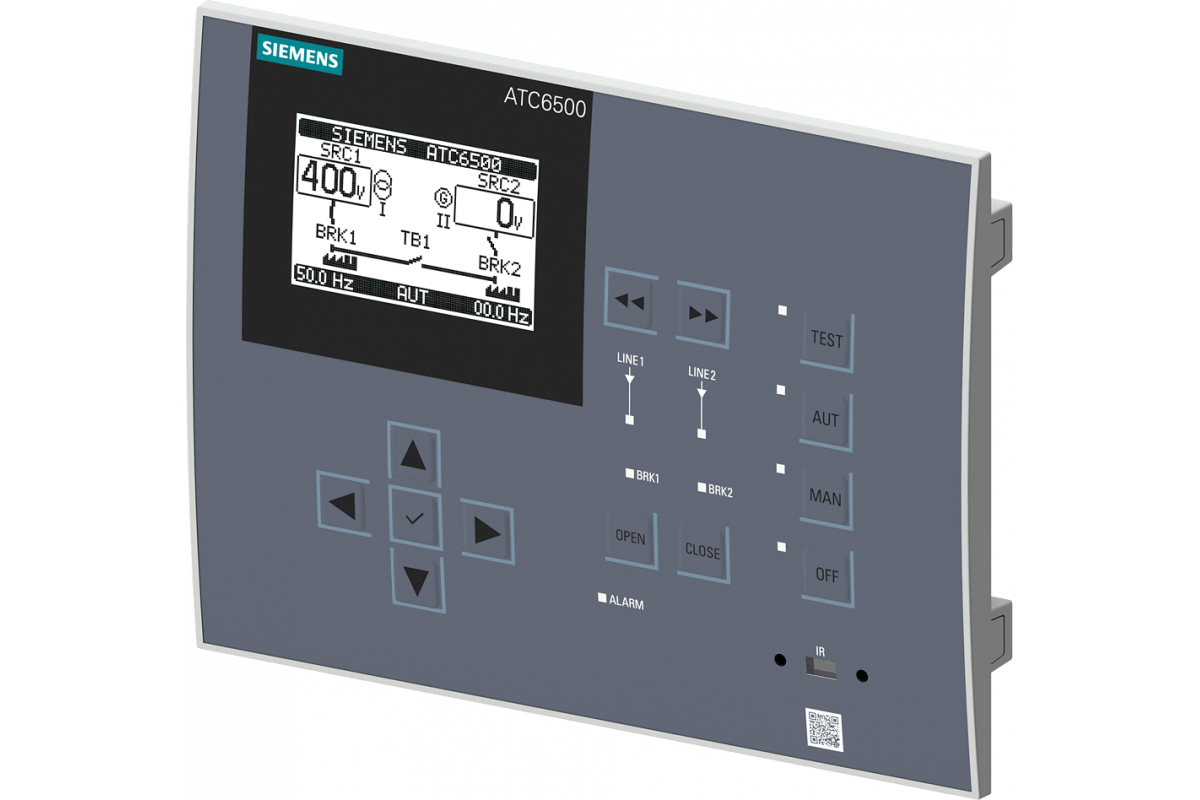 SENTRON 3KC ATC6500; ЖКД; 180x240 мм; автомат ввода резерва для управления авт. выключателями в литом корпусе, авт. выключателями, для переключения нагрузки между основной и запасной сетью; возможность управления дополнительным секционным выключателем; устройство для установки в распр. щиты: Un: 100...240 В AC, 50/60 Гц, 110...250 В DC; Un: 12...48 В DC; ном. напряжение Ue: 100...600 В AC, 50/60 Гц; винтовой клеммный зажим; встроенный интерфейс RS485 возможность расширения макс. 3 дополнительными модулями