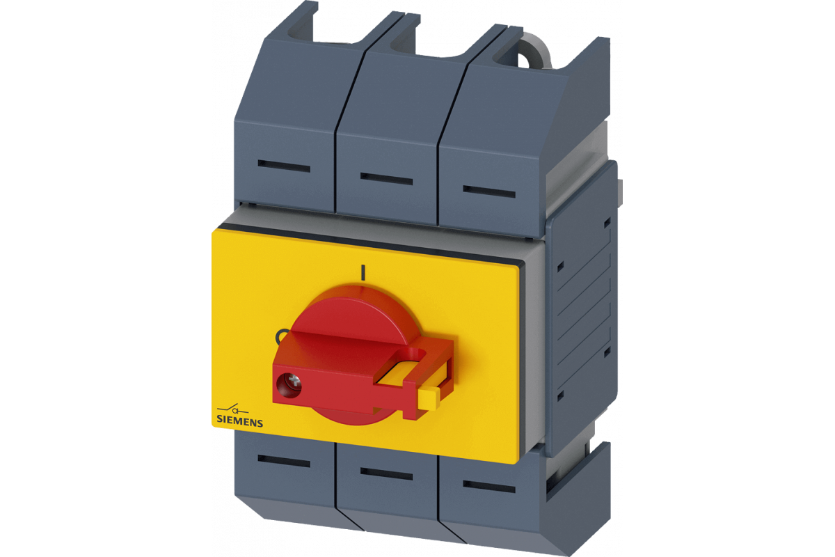 выключатель-разъединитель 125 А, типоразм. 02, 3-пол. фронтальный привод, средний комлектное устройство с прямым приводом, цвет: красный/желтый рамочная клемма