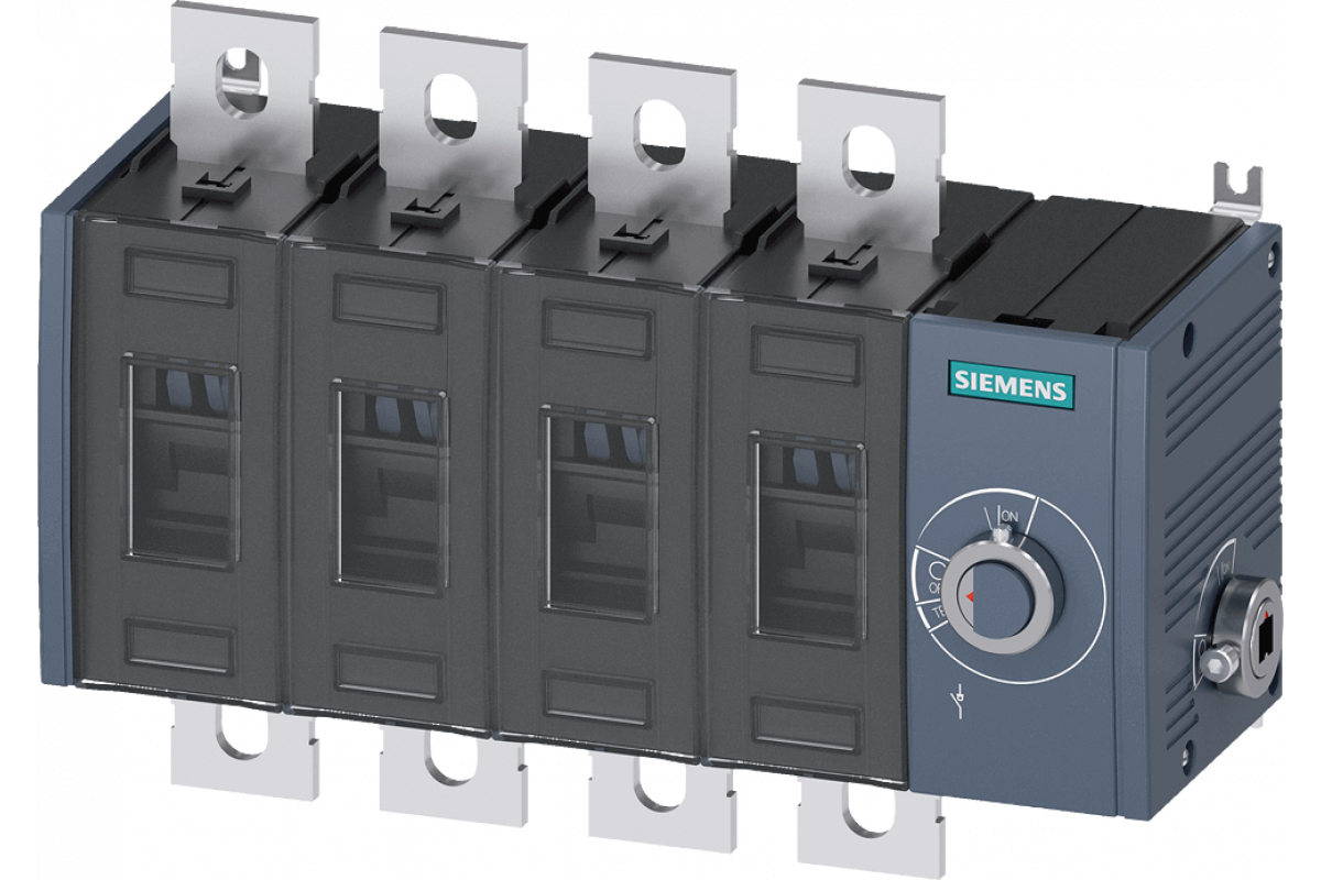 Разъединитель 200 A, типоразмер 3, 4-полюсный Боковой механизм управления правый Базовый блок без рукоятки плоская клемма