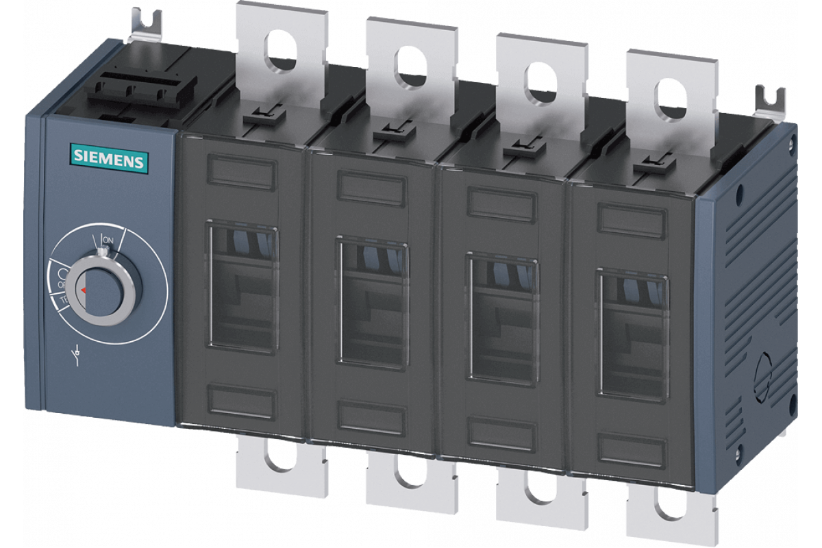 Разъединитель 400 A, типоразмер 3, 4-полюсный Боковой рабочий механизм слева Базовый блок без рукоятки плоская клемма