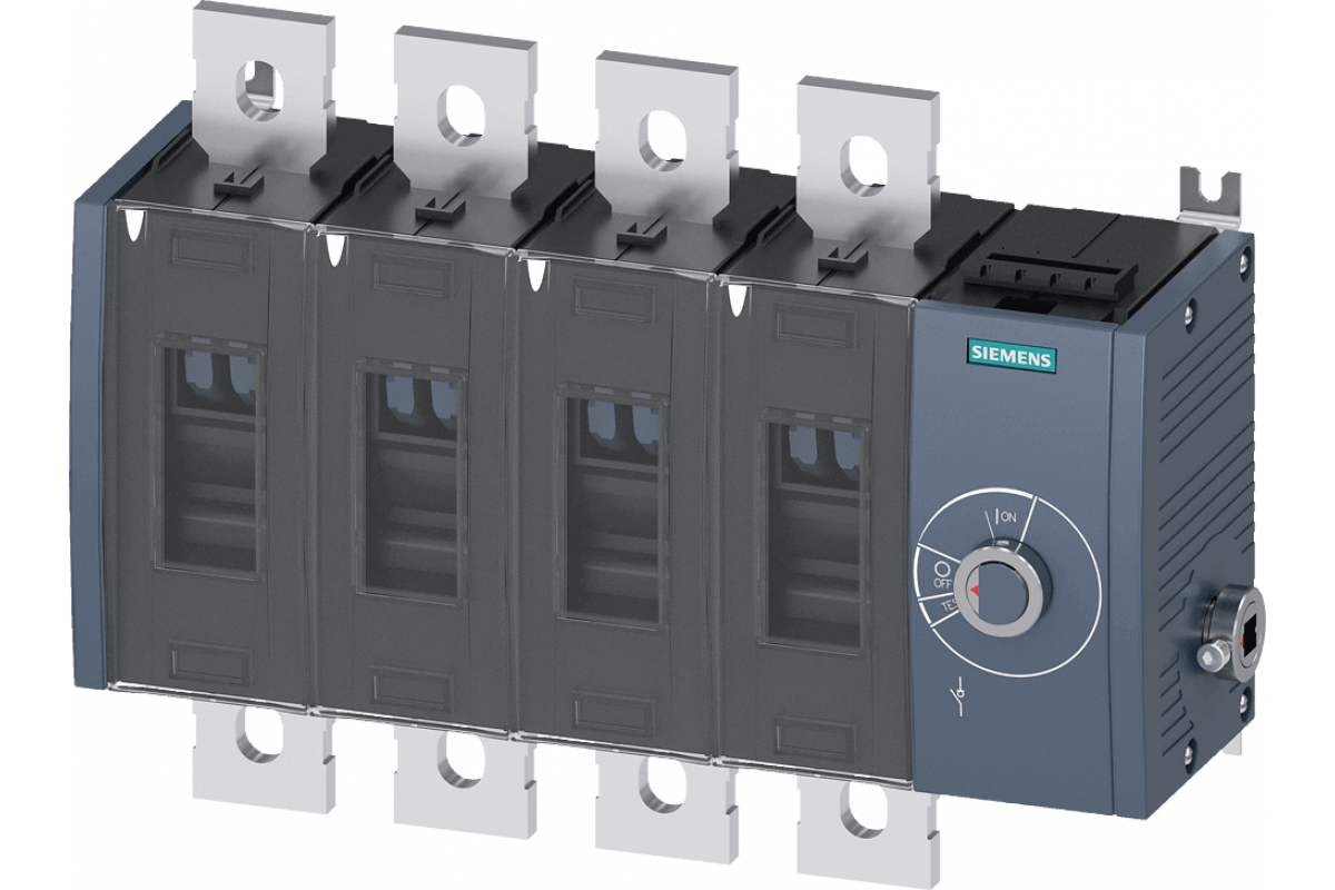 Разъединитель 500 A, типоразмер 4, 4-полюсный Боковой рабочий механизм справа Базовый блок без рукоятки плоская клемма