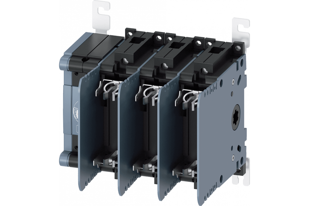 Разъединитель с предохранителем 3KF SITOR, 63 A, размер 1, 3-полюсный, для низковольтного предохранителя HRC Sz. 000 для защиты полупроводников Передний рабочий механизм слева, базовое устройство без ручки, коробчатая клемма без предохранителей