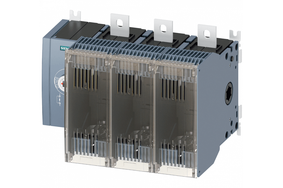 Разъединитель с предохранителем 400 A, размер 4, 3-полюсный для низковольтного предохранителя HRC Sz. 1 и 2 Передний рабочий механизм слева Базовый блок без рукоятки плоская клемма