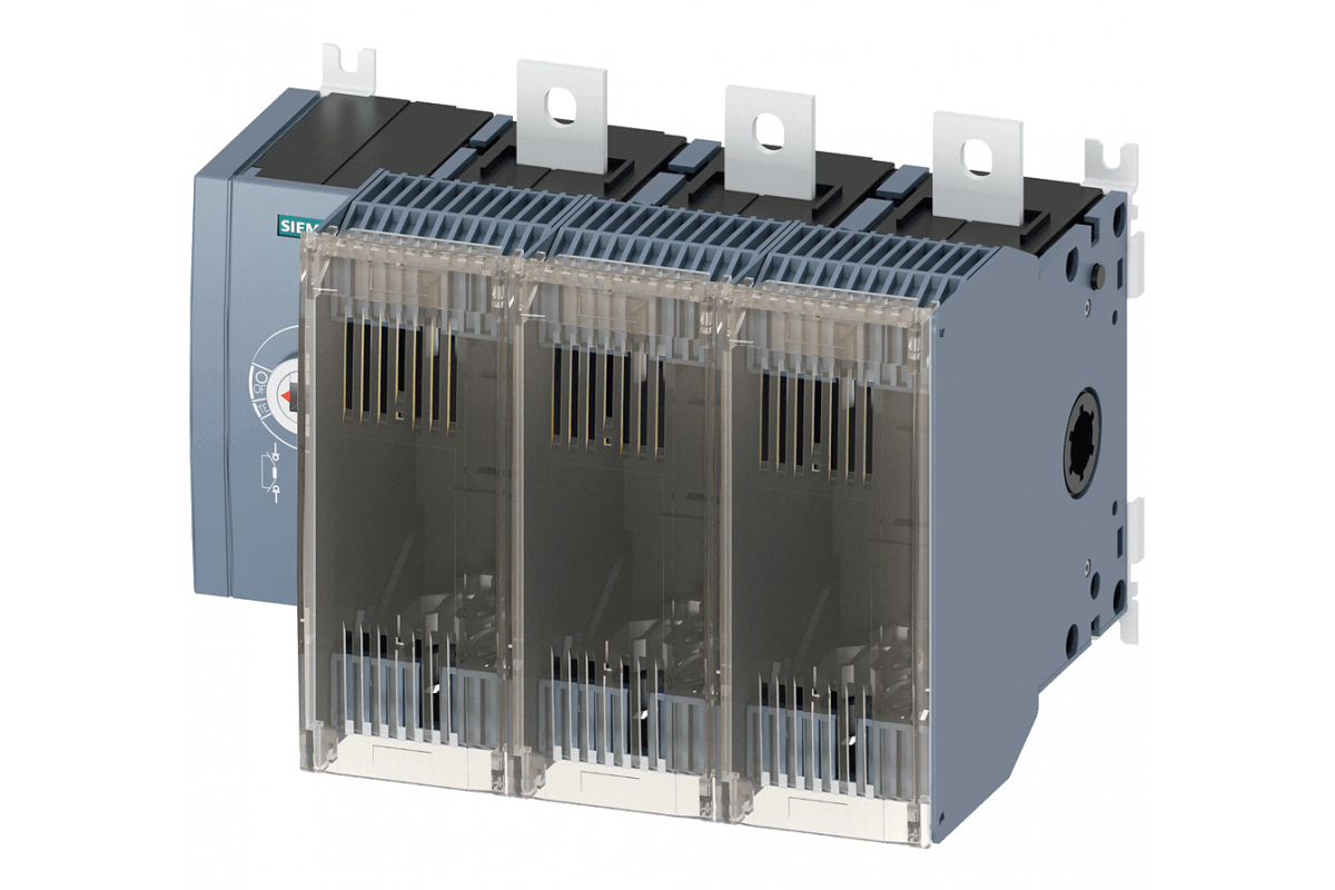Разъединитель с предохранителем 400 A, размер 4, 3-полюсный для низковольтного предохранителя HRC Sz. 1 и 2 Боковой рабочий механизм слева Базовый блок без ручки плоский терминал