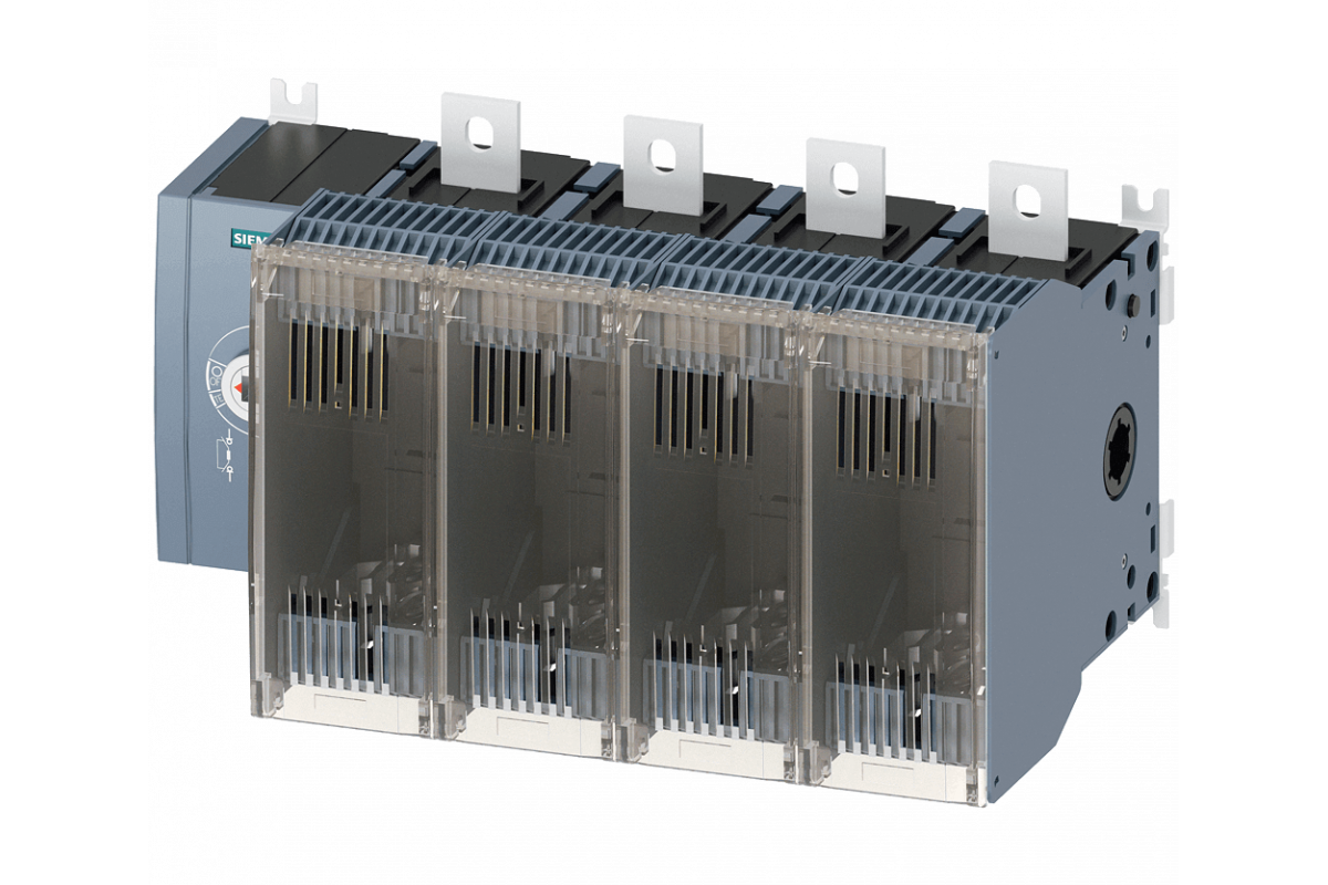 Разъединитель с предохранителем 400 A, размер 4, 4-полюсный для низковольтного предохранителя HRC Sz. 1 и 2 Боковой механизм управления слева Базовый блок без рукоятки плоская клемма