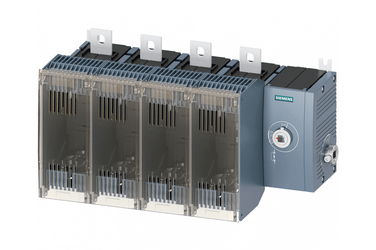 Разъединитель с предохранителем 400 A, типоразмер 4, 4-полюсный для низковольтного предохранителя HRC Sz. 1 и 2 Боковой рабочий механизм правый Базовый блок без ручки плоская клемма