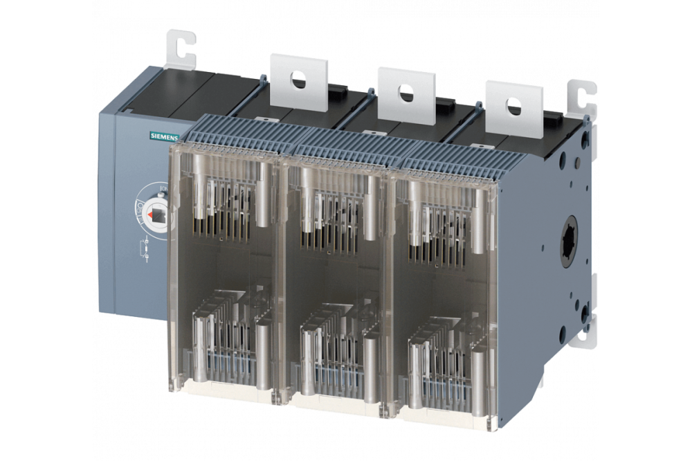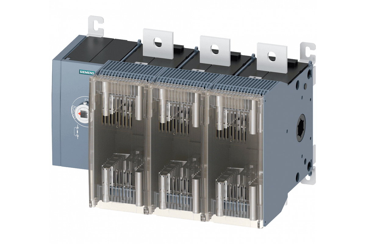 Разъединитель с предохранителем 630A, размер 5, 3-полюсный низковольтный HRC-предохранитель Sz. 3 и 2 Механизм включения спереди слева Базовое устройство без ручки плоская клемма определенный номер детали SIVACON