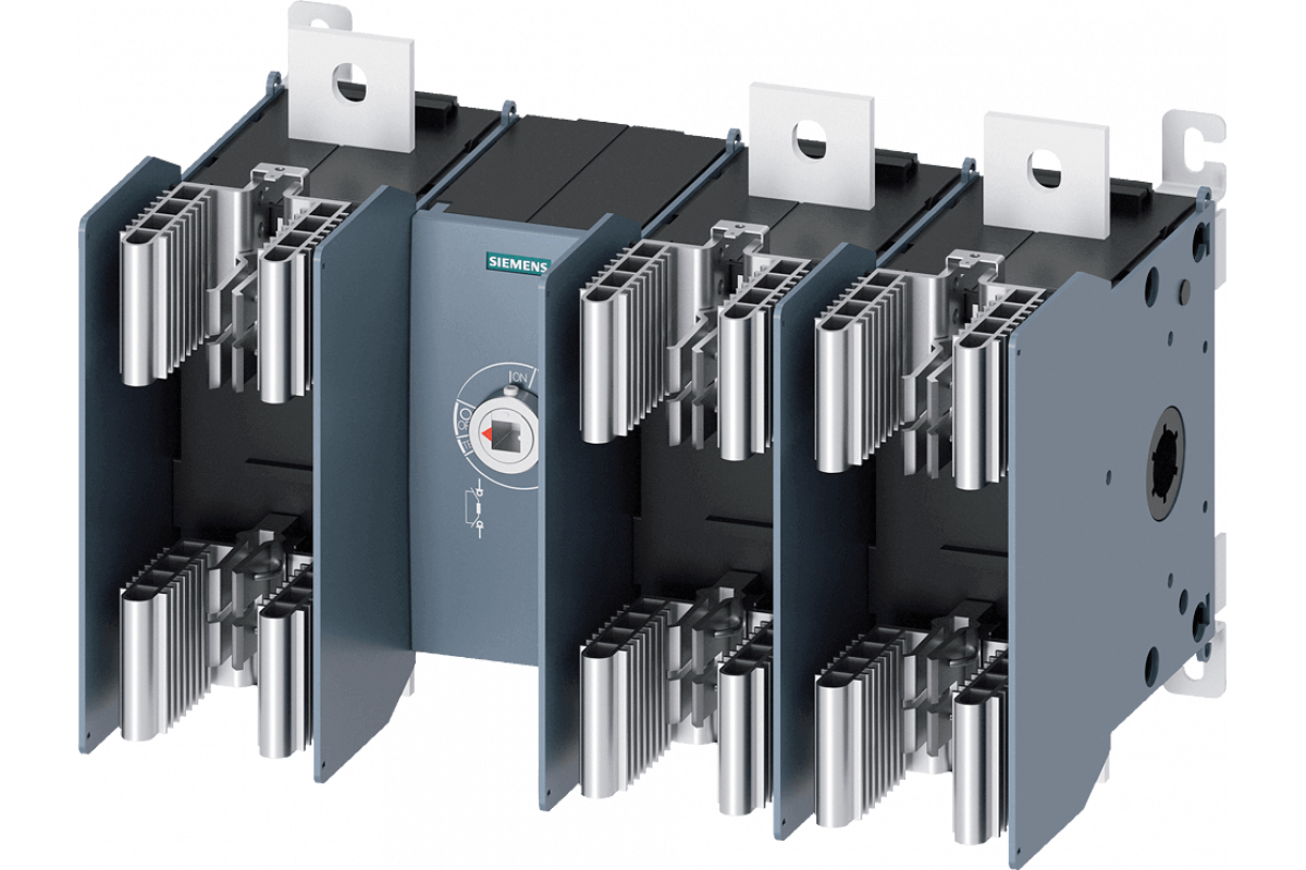 Разъединитель с предохранителем 3KF SITOR, 800 A, типоразмер 5, 3-полюсный, для низковольтного предохранителя HRC Sz. 2 и 3 для полупроводниковой защиты, передний механизм управления, центральный, основной блок без ручки, плоская клемма без предохранителей