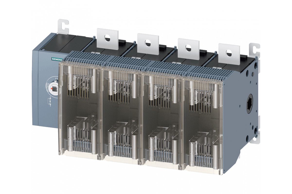 Разъединитель с предохранителем 800 A, типоразмер 5, 4-полюсный для низковольтного предохранителя HRC Sz. 2 и 3 Боковой рабочий механизм слева Базовый блок без ручки плоская клемма