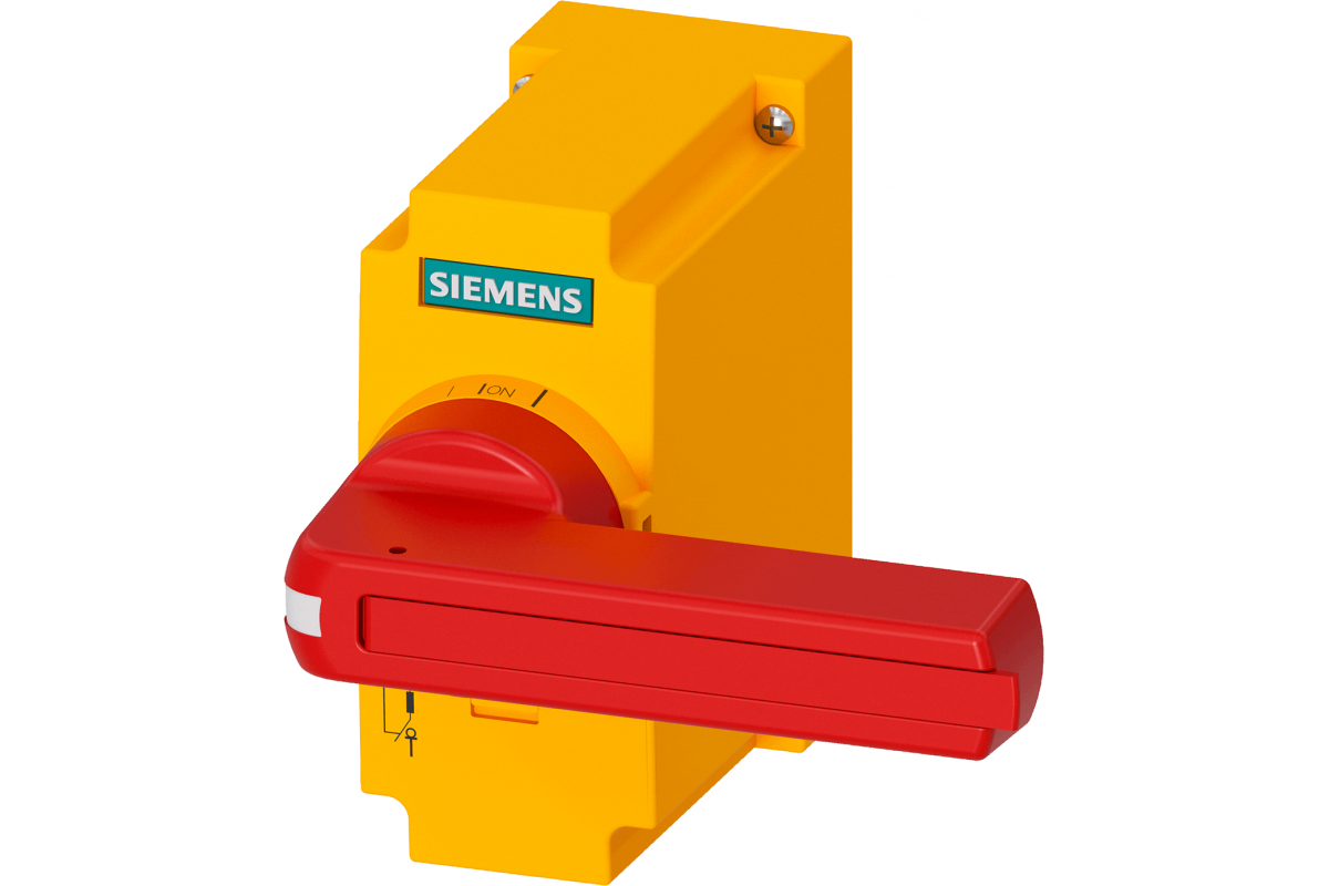 Принадлежность для 3KF типоразмера 2 Механизм прямого управления, красный/желтый Можно зафиксировать в положении OFF с помощью трех навесных замков