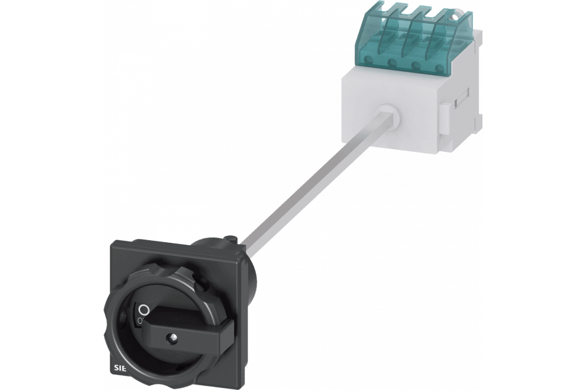 SENTRON, Разъединитель 3LD, главный выключатель, 3-полюсный, Iu: 16 A, Рабочая мощность / при AC-23 A при 400 В: 7.5 кВт, напольный монтаж с дверной муфтой, поворотный механизм управления, черный, монтаж рукоятки на 4 отверстия, без компенсации допусков