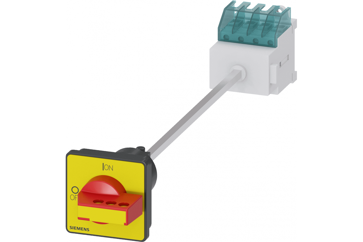SENTRON, выключатель-разъединитель 3LD, выключатель АВАРИЙНОГО ВЫКЛЮЧЕНИЯ, 4-полюсный, Iu: 16 A, Рабочая мощность / при AC-23 A при 400 В: 7.5 кВт, напольный монтаж с дверной муфтой, механизм с отключаемой ручкой, красный/желтый, крепление рукоятки на 4 отверстия