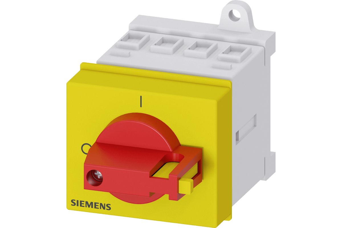SENTRON, Выключатель-разъединитель 3LD, аварийный выключатель, 3-полюсный, Iu: 16 A, рабочая мощность / при AC-23 A 400 В: 7.5 кВт, установка в распределительных щитах, механизм с ручкой, красный / желтый, ручка непосредственно на выключателе