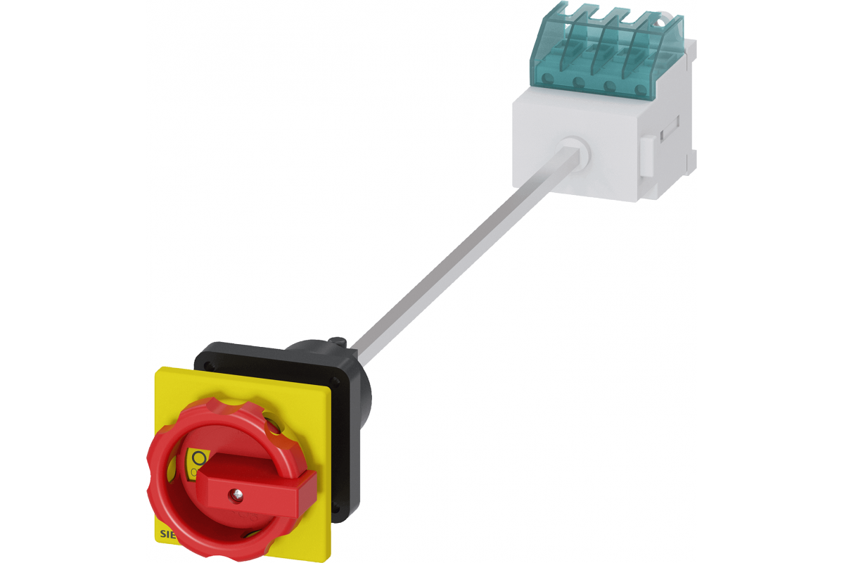 SENTRON, Разъединитель 3LD, аварийный выключатель, 3-полюсный, Iu: 16 A, рабочая мощность / при AC-23 A 400 В: 7.5 кВт, напольный монтаж с дверной муфтой, поворотный механизм управления, красный / желтый, центральный монтаж 22.5 мм рукоятка