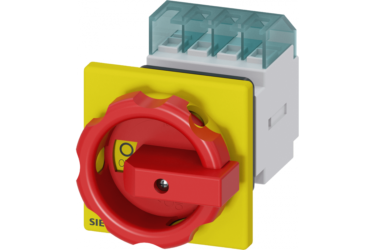 SENTRON, Выключатель-разъединитель 3LD, аварийный выключатель, 3-полюсный, Iu: 16 A, рабочая мощность / при AC-23 A при 400 В: 7.5 кВт, фронтальный монтаж, поворотный механизм управления, красный / желтый, центральный монтаж 22.5 мм рукоятка