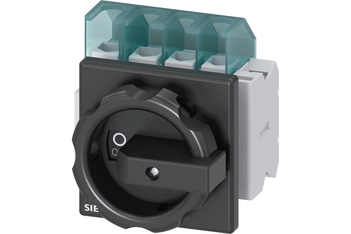 SENTRON, Разъединитель 3LD, главный выключатель, 4-полюсный, Iu: 25 A, Рабочая мощность / при AC-23 A при 400 В: 9.5 кВт, фронтальный монтаж, 1 NC, 1 NO, поворотный механизм управления, черный, монтаж рукоятки на 4 отверстия