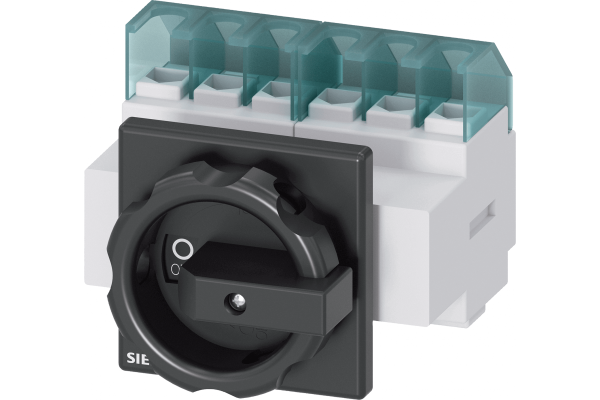 SENTRON, Разъединитель 3LD, главный выключатель, 6-полюсный, Iu: 25 A, Рабочая мощность / при AC-23 A при 400 В: 9.5 кВт, фронтальный монтаж, поворотный механизм управления, черный, крепление рукоятки на 4 отверстия