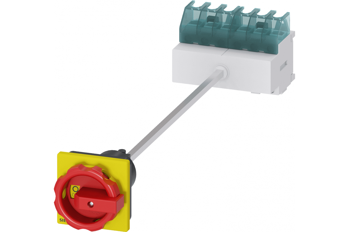 SENTRON, Выключатель-разъединитель 3LD, аварийный выключатель, 6-полюсный, Iu: 25 A, рабочая мощность / при AC-23 A 400 В: 9.5 кВт, напольный монтаж с дверной муфтой, поворотный механизм управления, красный / желтый, крепление рукоятки на 4 отверстия