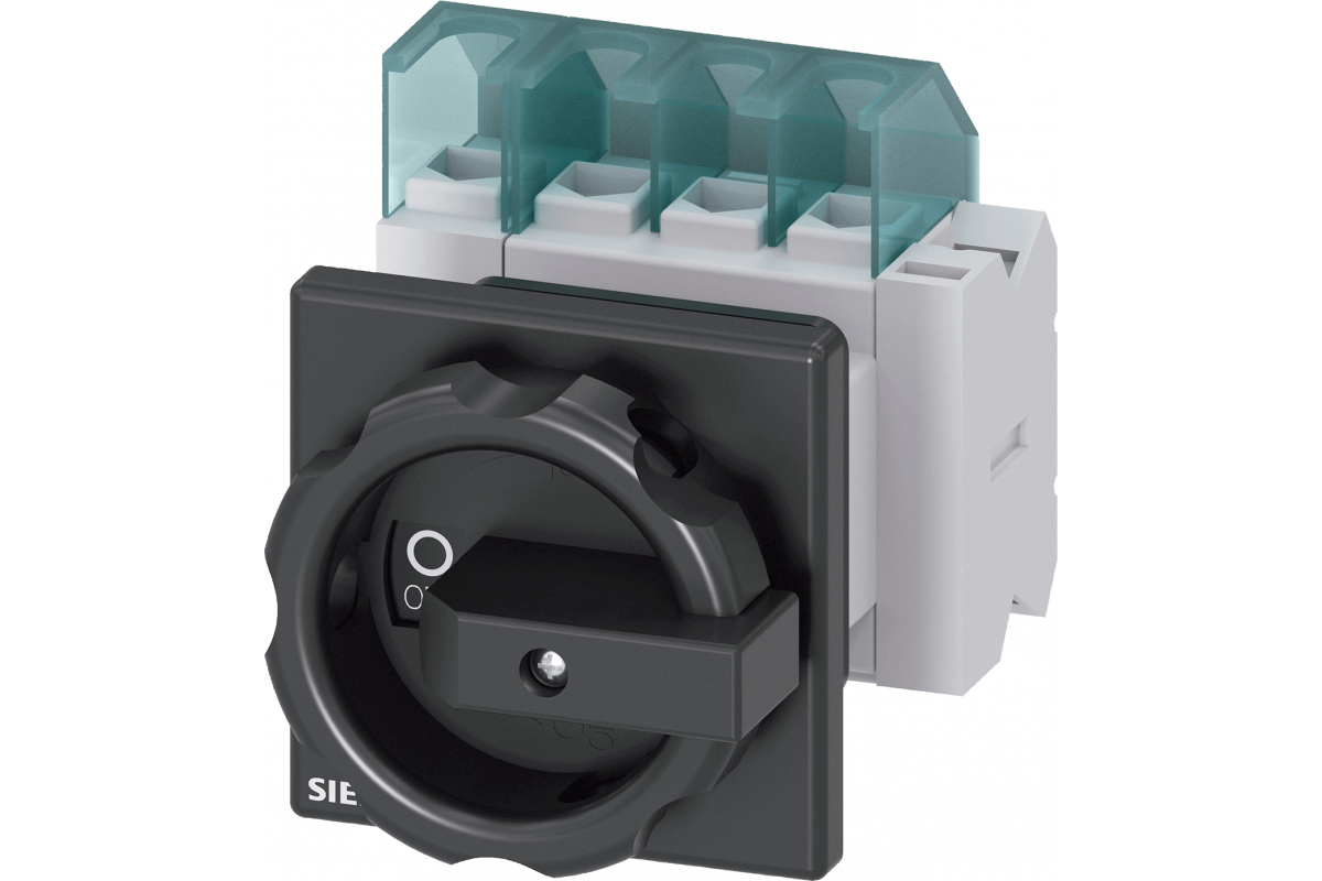 SENTRON, Выключатель-разъединитель 3LD, главный выключатель, 4-полюсный, Iu: 25 A, рабочая мощность / при AC-23 A при 400 В: 9.5 кВт, фронтальный монтаж, 1 НЗ, 1 НО, поворотный рабочий механизм, черный, центральный монтаж 22.5 мм рукоятки