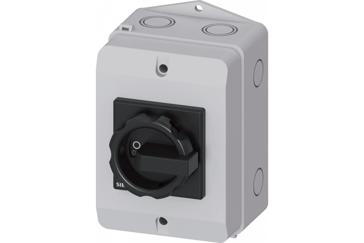 SENTRON, Разъединитель 3LD, главный выключатель, 3-полюсный, Iu: 25 A, рабочая мощность / при AC-23 A при 400 В: 9.5 кВт, литая пластиковая оболочка для метрического кабельного ввода, 2 НО, поворотный механизм управления, черный
