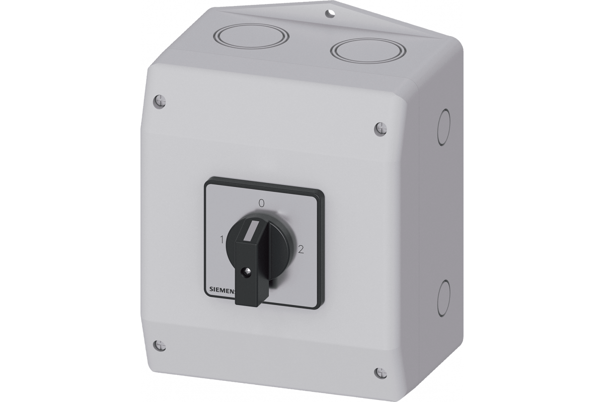 ПЕРЕКЛЮЧАТЕЛЬ 3 ПОЛЮСА IU=25, P/AC-23A ПРИ 400V=9,5KW 2 N-КЛЕММЫ КОРПУС ИЗ ИЗОЛЯЦИОННОГО МАТЕРИАЛА , IP65, ПЕРЕКЛЮЧАТЕЛЬ 1-0-2, НЕ ЗАПИРАЕМ.