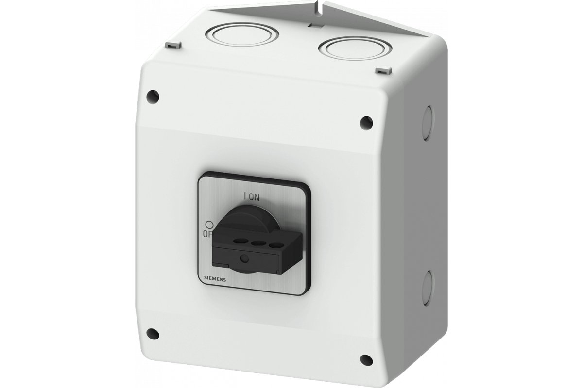 выключатель-разъединитель SENTRON 3LD в корпусе, сервисный выключатель с панелью для ЭМС-защиты, 6-пол., Iu: 25 A, AC23A 400 В для 50/60 Гц: 9,5 кВт при работе с частотным преобразователем: AC20 400 В при 0-550 Гц: 5,5 кВт, 1 НО+1НЗ, опережение 20-150 мс, герметизированный диэлектрический корпус для метрического резьбового крепления, привод с поворотной рукояткой, цвет: черный, с возможностью блокировки в положениях 0 и I, вкл. экранные зажимы