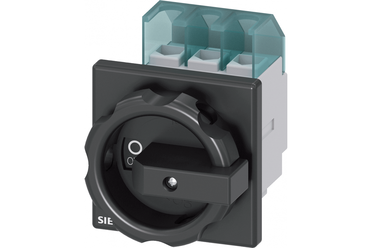 SENTRON, Выключатель-разъединитель 3LD, главный выключатель, 3-полюсный, Iu: 32 A, Рабочая мощность / при AC-23 A при 400 В: 11.5 кВт, фронтальный монтаж, поворотный рабочий механизм, черный, монтаж рукоятки на 4 отверстия