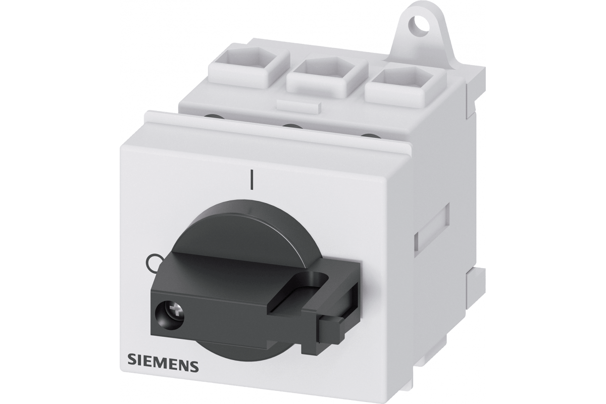 SENTRON, Выключатель-разъединитель 3LD, главный выключатель, 3-полюсный, Iu: 32 A, рабочая мощность / при AC-23 A при 400 В: 11.5 кВт, установка в распределительных щитах, механизм с ручкой, черный, ручка непосредственно на выключателе
