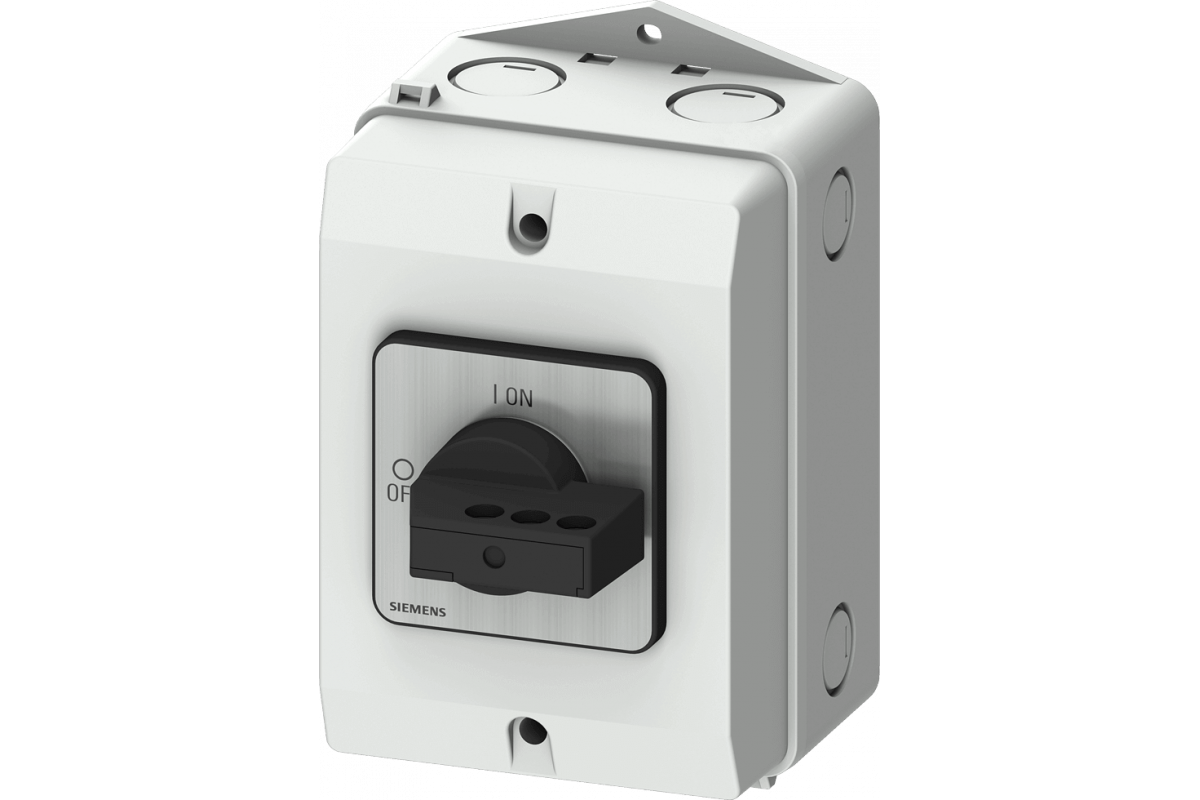 выключатель-разъединитель SENTRON 3LD в корпусе, сервисный выключатель с панелью для ЭМС-защиты, 3-пол., Iu: 32 А, AC23A 400 В для 50/60 Гц: 11,5 кВт при работе с частотным преобразователем: AC20 400 В при 0-550 Гц: 7,5 кВт, 1 НО+1НЗ, опережение 20-150 мс, герметизированный диэлектрический корпус для метрического резьбового крепления, привод с поворотной рукояткой, цвет: черный, с возможностью блокировки в положениях 0 и I, вкл. экранные зажимы