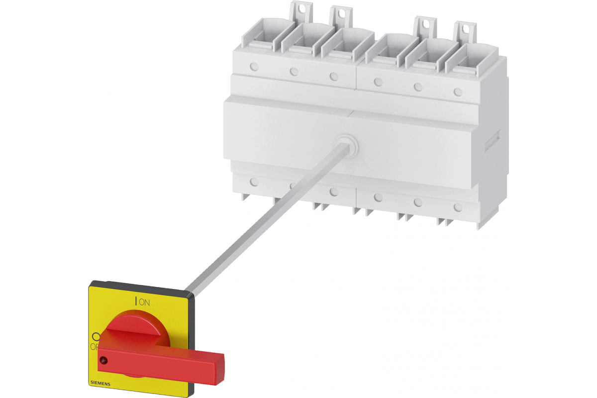 SENTRON, Выключатель-разъединитель 3LD, аварийный выключатель, 6-полюсный, Iu=250 A, рабочая мощность / при AC-23 A 400 В: 132 кВт, напольный монтаж с дверной муфтой, механизм с ручкой, красный/желтый, монтаж ручки на 4 отверстия