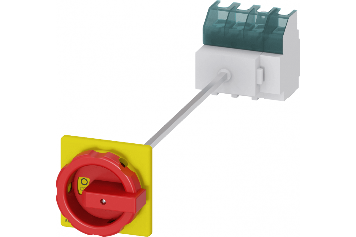 SENTRON, Выключатель-разъединитель 3LD, аварийный выключатель, 4-полюсный, Iu: 63 A, рабочая мощность / при AC-23 A 400 В: 22 кВт, напольный монтаж с дверной муфтой, поворотный рабочий механизм, красный / желтый, монтаж рукоятки в 4 отверстия