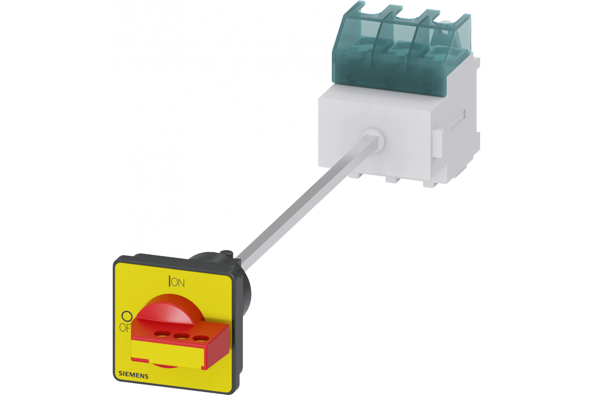 SENTRON, выключатель-разъединитель 3LD, выключатель аварийного отключения, 3-полюсный, Iu: 63 A, Рабочая мощность / при AC-23 A при 400 В: 22 кВт, напольный монтаж с дверной муфтой, отключаемый механизм с ручкой, красный/желтый, монтаж рукоятки в 4 отверстия