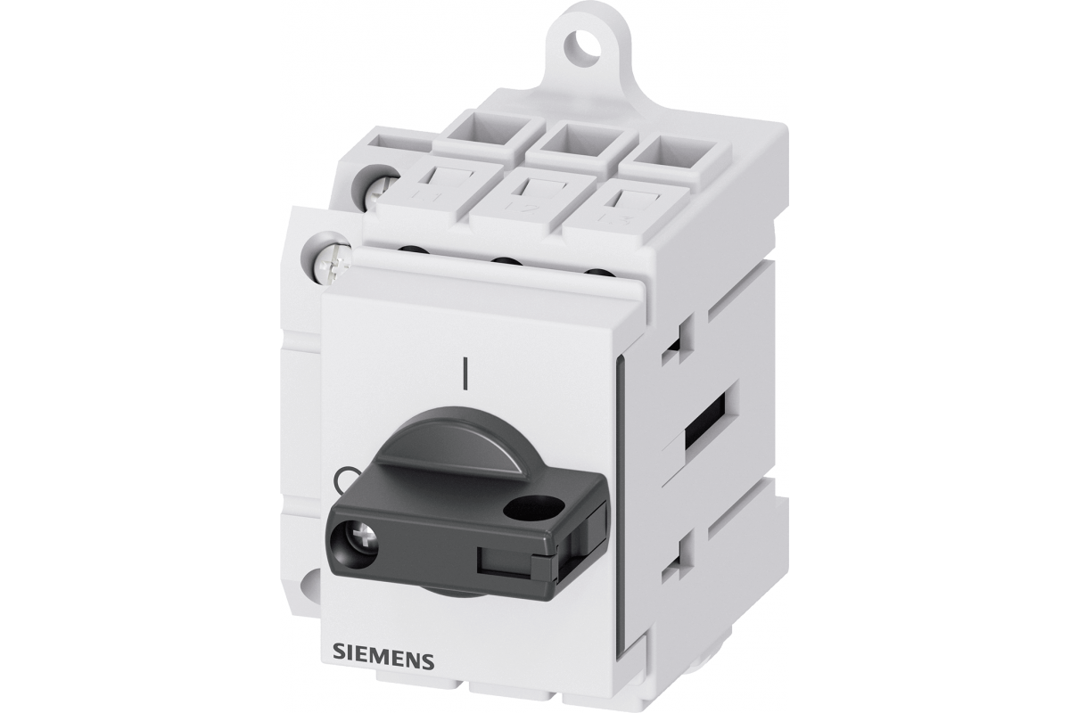 Выключатель нагрузки 3LD3, Iu 16 A Главный выключатель 3-полюсный Номинальная рабочая мощность при AC-23 A при 400 В 7.5кВт Установка в распределительных щитах, Базовый выключатель с селекторной ручкой черный с вспомогательным выключателем 1OE + 1S