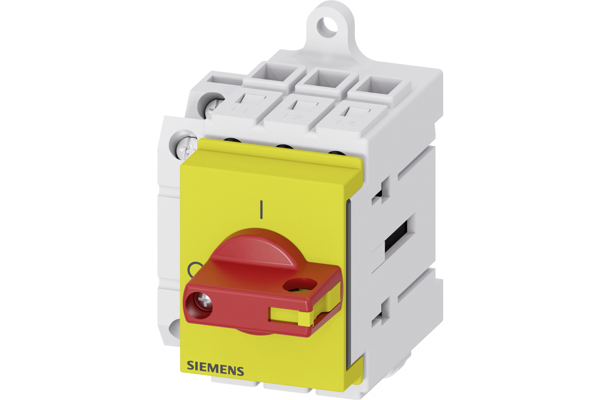 Выключатель нагрузки 3LD3, Iu 16 A Главный выключатель 3-полюсный Номинальная рабочая мощность при AC-23 A при 400 В 7.5кВт Установка в распределительных щитах, Базовый выключатель с селекторной ручкой красный / желтый с вспомогательным выключателем 1OE + 1S