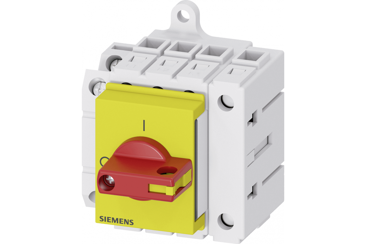 Выключатель нагрузки 3LD3, Iu 16 A Главный выключатель 3-полюсный + N Номинальная рабочая мощность при AC-23 A при 400 В 7.5 кВт Установка в распределительных щитах, Базовый выключатель с селекторной ручкой красный / желтый с вспомогательным выключателем 1OE + 1S
