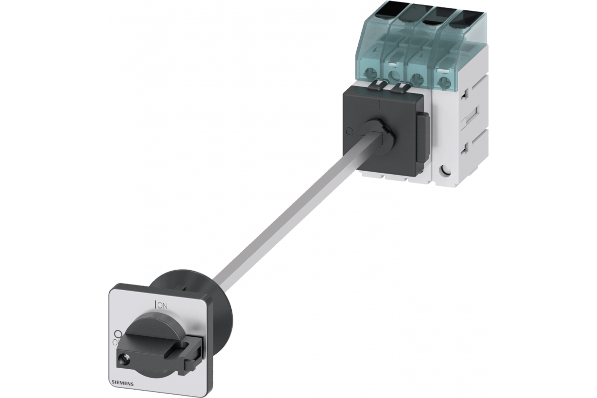 Выключатель нагрузки 3LD3, Iu 16 A Главный выключатель 3-полюсный + N Номинальная рабочая мощность при AC-23 A при 400 В 7.5кВт напольный монтаж Базовый выключатель с дверной муфтой Монтаж в центральное отверстие 22.5 мм Тумблер черный 48x48 мм