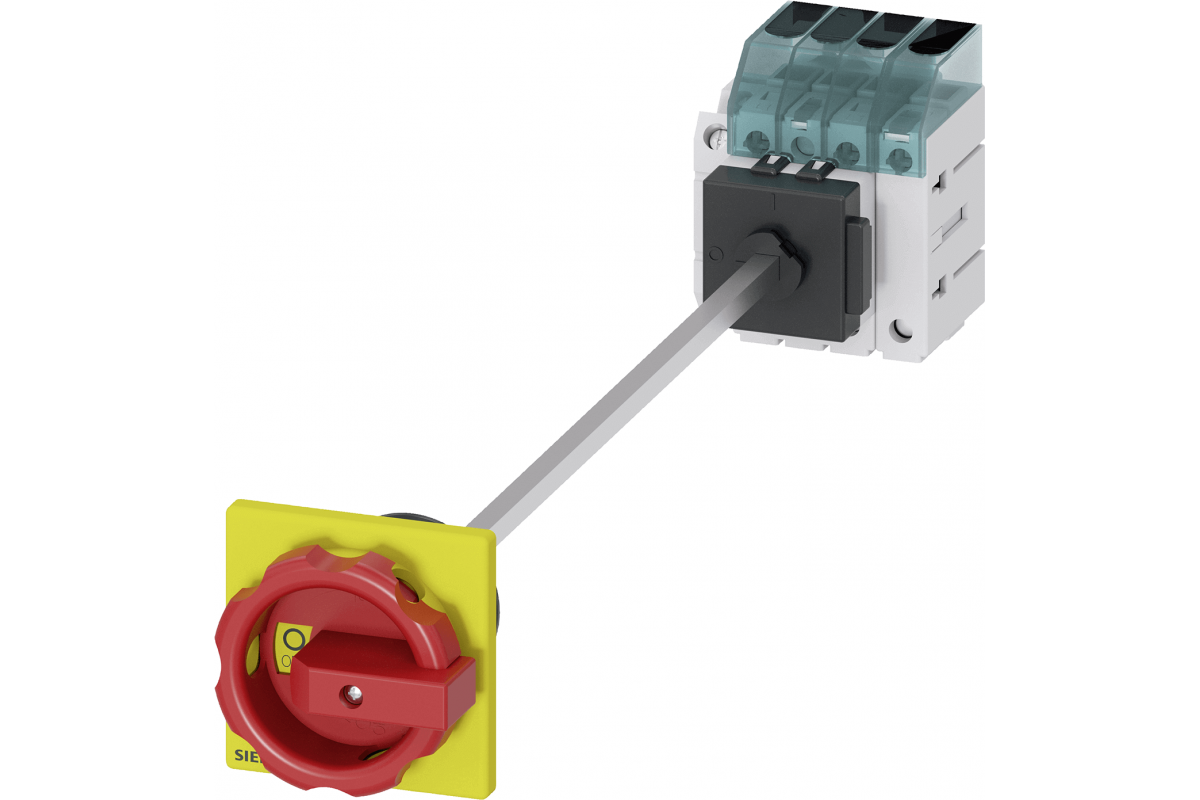 Выключатель нагрузки 3LD3, Iu 16 A Главный выключатель 3-полюсный + N Номинальная рабочая мощность при AC-23 A при 400 В 7.5 кВт напольный монтаж Базовый выключатель с дверной муфтой Монтаж в центральном отверстии 22.5 мм Поворотный привод красный / желтый 66 x 66 мм с вспомогательным выключателем 1OE + 1S