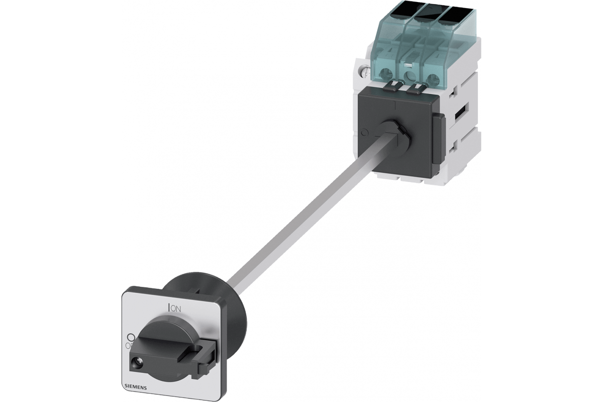 Выключатель нагрузки 3LD3, Iu 25 A Главный выключатель 3-полюсный Номинальная рабочая мощность при AC-23 A при 400 В 9.0кВт напольный монтаж Основной выключатель с дверной муфтой Монтаж в центральном отверстии 22.5 мм Тумблерный привод черный 48x48 мм со вспомогательным выключателем 1OE + 1S