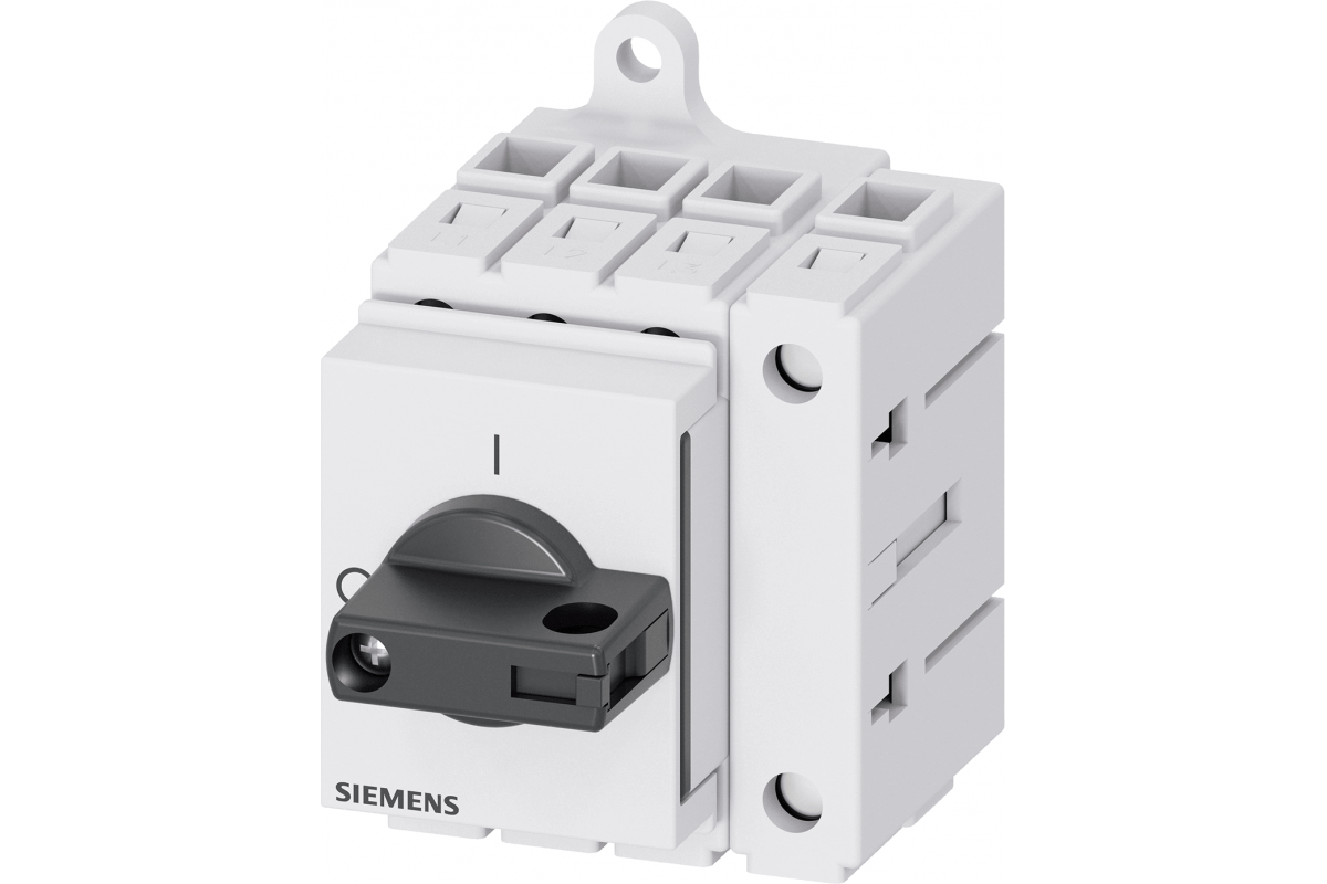 Выключатель нагрузки 3LD3, Iu 40 A Главный выключатель 3-полюсный + N Номинальная рабочая мощность при AC-23 A при 400 В 18.5 кВт Установка в распределительных щитах, Основной выключатель с ручкой селектора черный